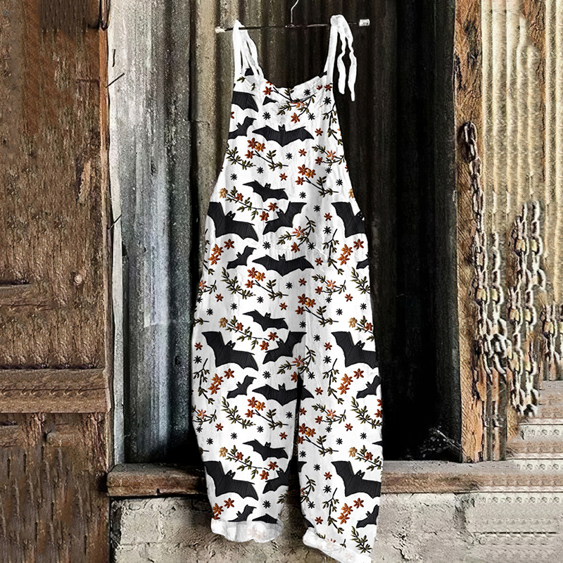 Halloween Bat Print Loose Jumpsuit