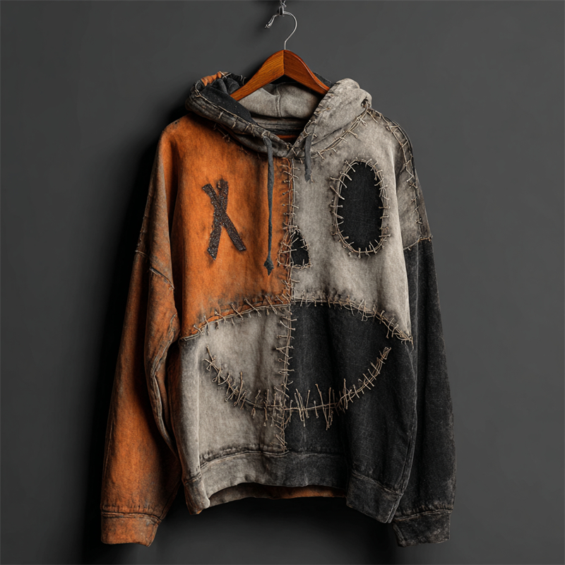 Halloween Pumpkin Face Colorblock Patchwork Hoodie