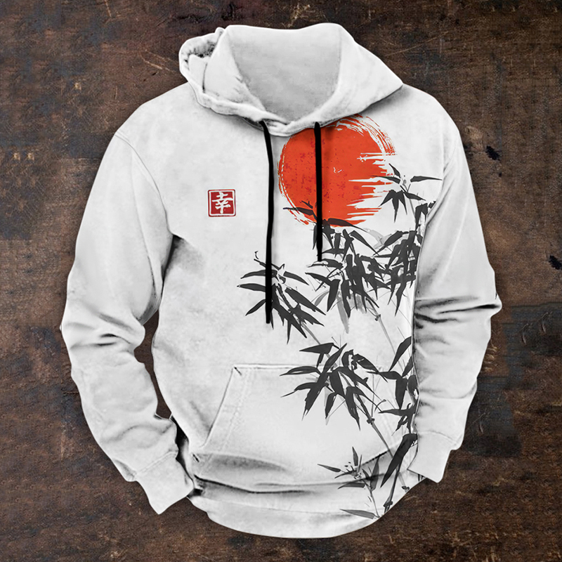 Japanese Bamboo Forest And Red Sun Art Casual Hoodie
