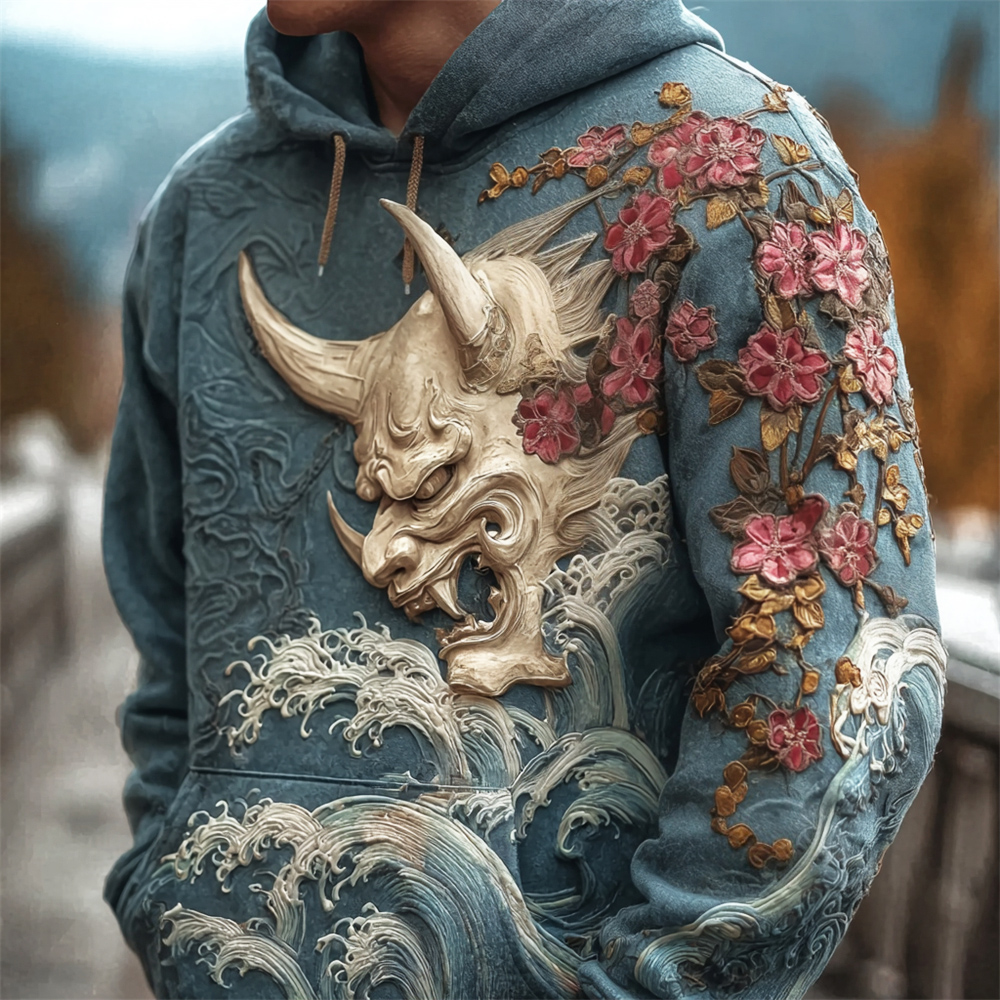 Japanese Ghost & Plum Art Men's Hooded Sweatshirt