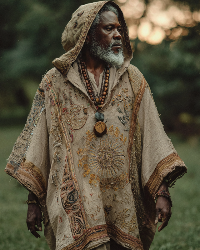 Men's 3D Star and Moon Embroidered Hooded Kaftan c30c