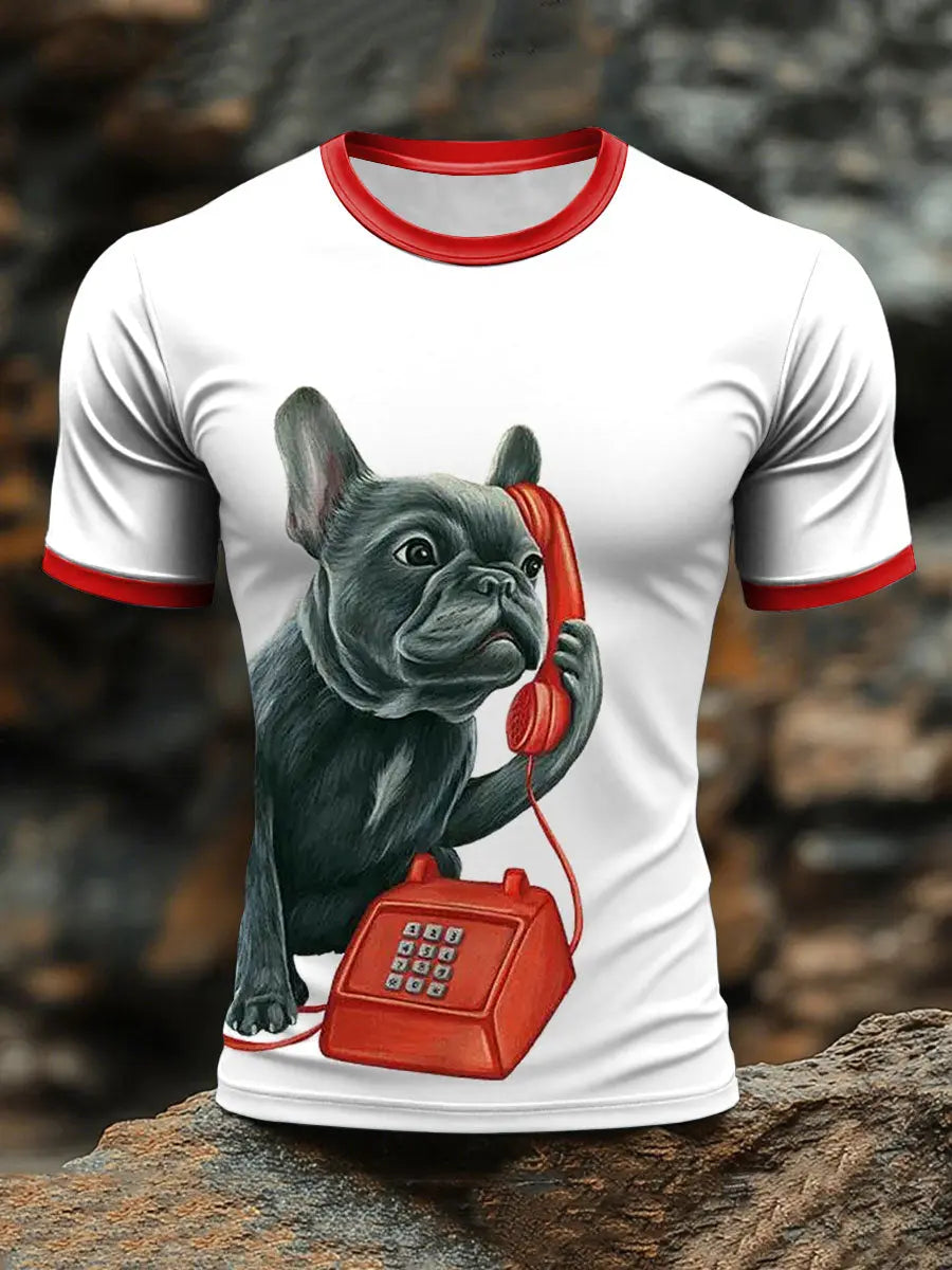 Men's French Bulldog on the Phone Printed T-shirts