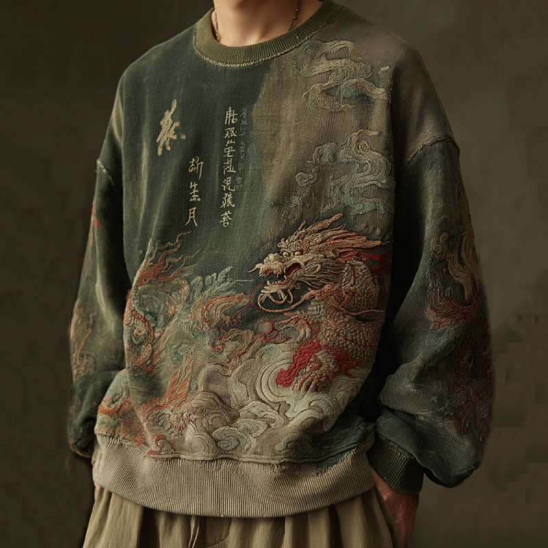 Men's Japanese Dragon And Landscape Art Print Sweatshirt