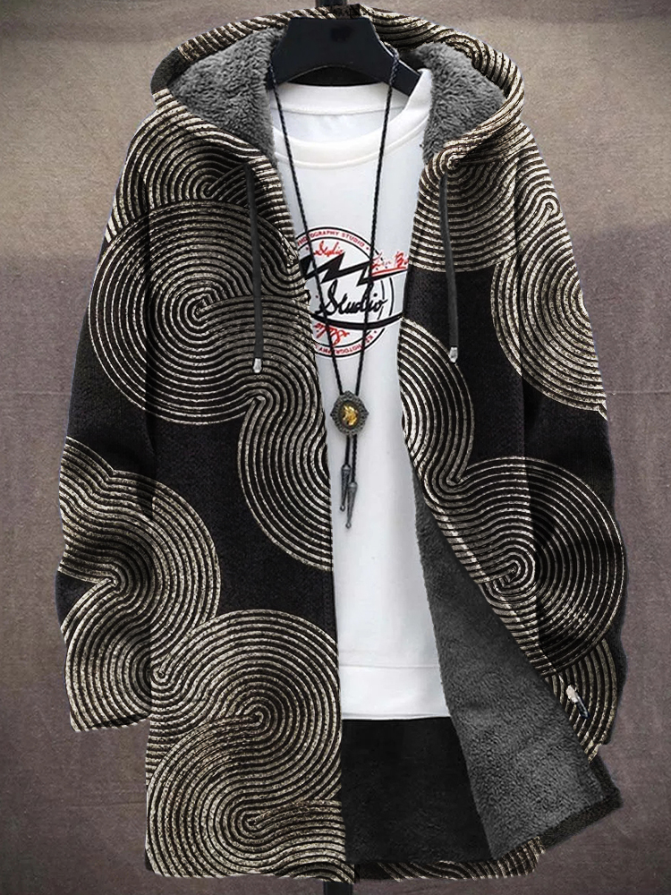 Men's Simple Geometric Japanese Lino Art Cozy Hooded Cardigan