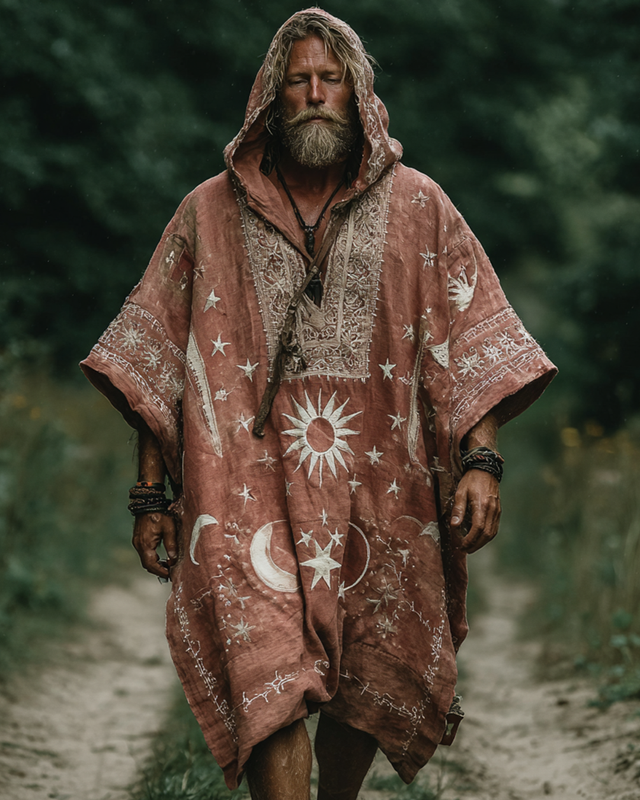 Men's Vacation Star and Moon 3D Embroidered Hooded Kaftan f640
