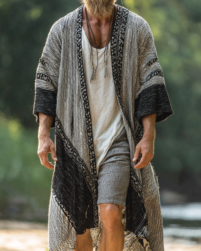 Men's casual comfortable breathable hand-knitted kaftan cardigan 7dd4