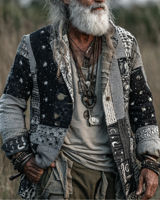 Men's Star and Moon 3D Embroidered Contrast Color Stitching Jacket e4c7