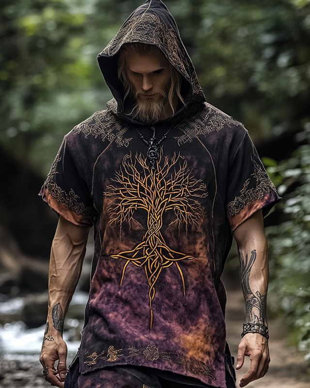 Men's Viking Life Tree 3D Embroidered Tie-Dye Hooded Sweatshirt 8bba