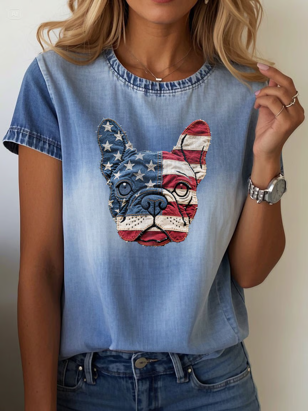 Women Dog Short Sleeve Tee T-shirt Crew Neck Printing Casual Summer Graphic Tee Top