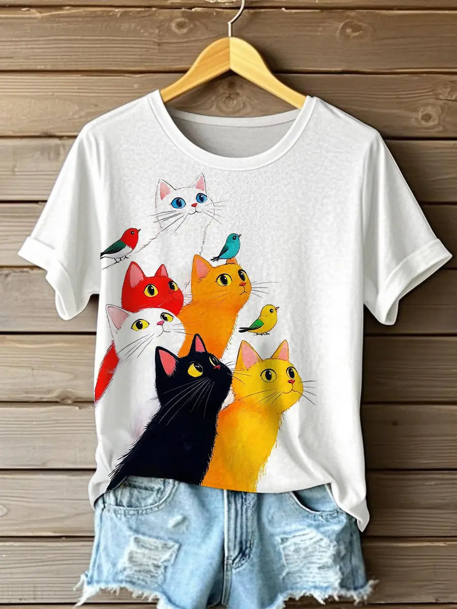 Women's Funny Cats Art Print Short Sleeve T-Shirt