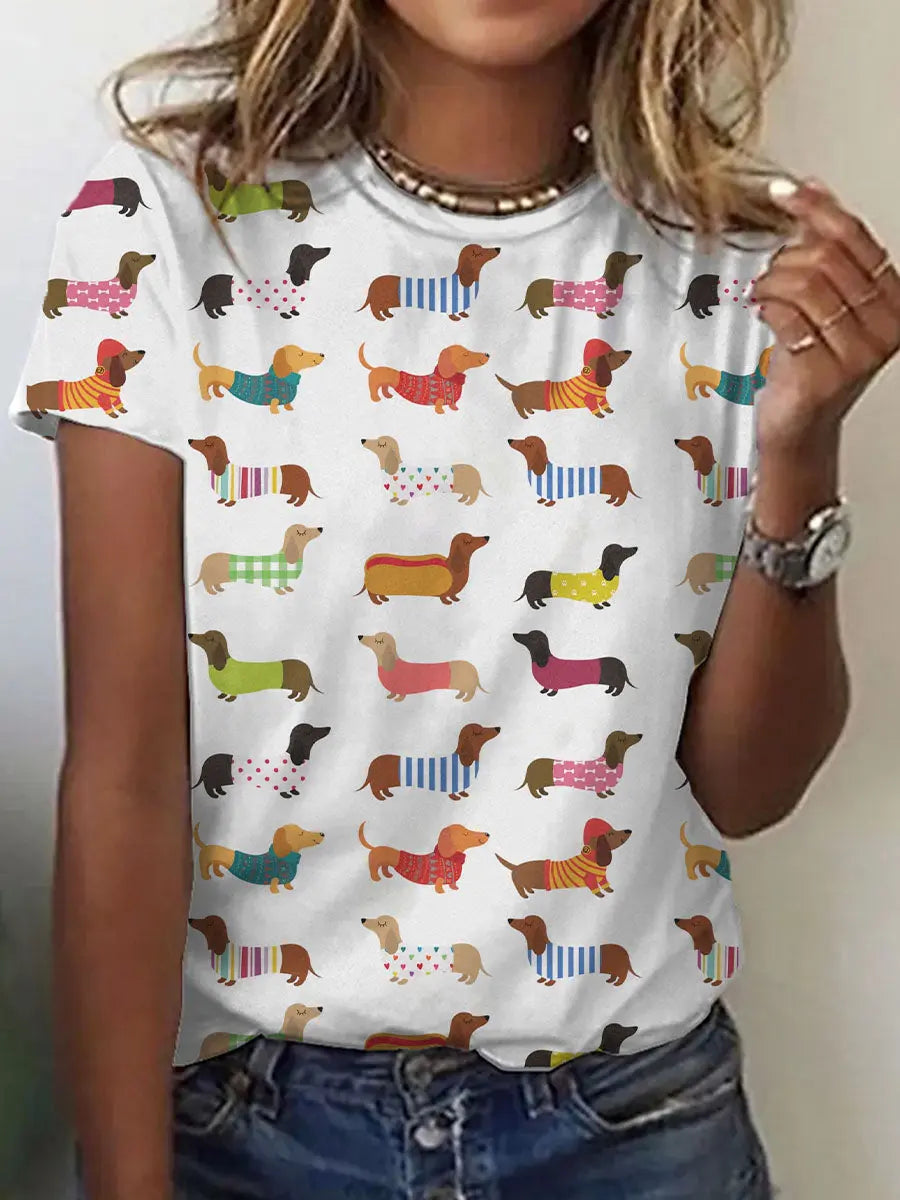 Women's Funny Dachshund Art Print Short Sleeve T-Shirt