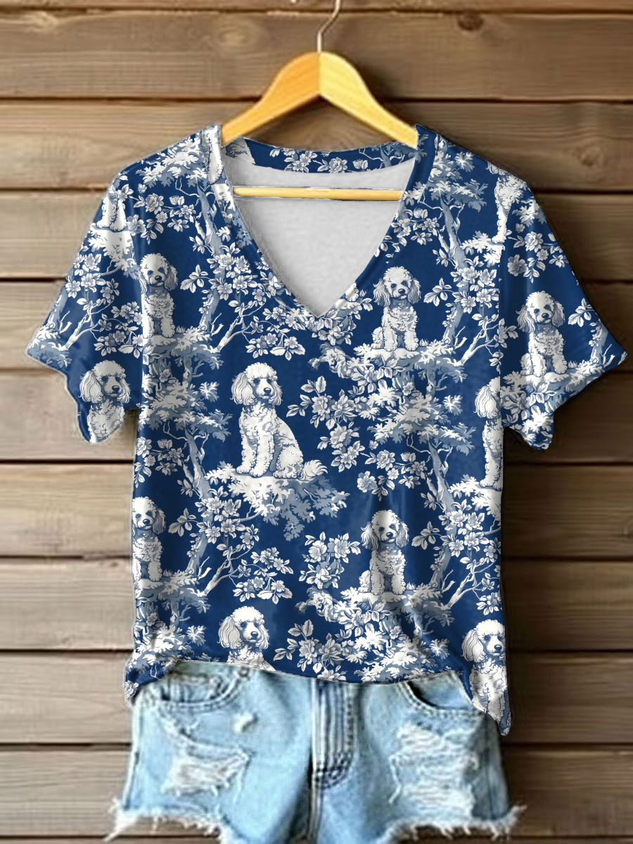 Women's Poodle V-Neck T-shirts